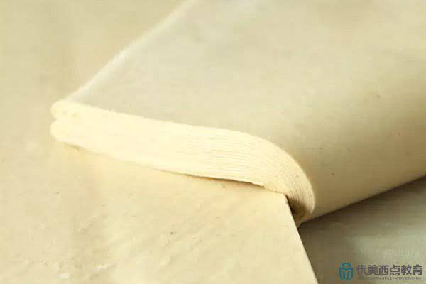 注意操作环境的温度,完成后的开酥面团需油、面层次分明,避免开成混酥,影响可颂面包内部组织。