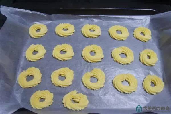 8.烤盘铺上油纸,再挤出花纹。