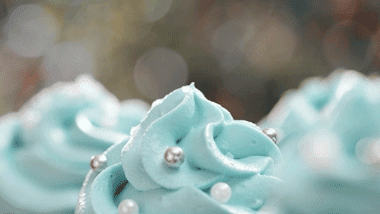 3、加入蓝色食用色素(一定要少量的加,宁少勿多),调制成粉蓝色(一旦艳了就不好看了)。