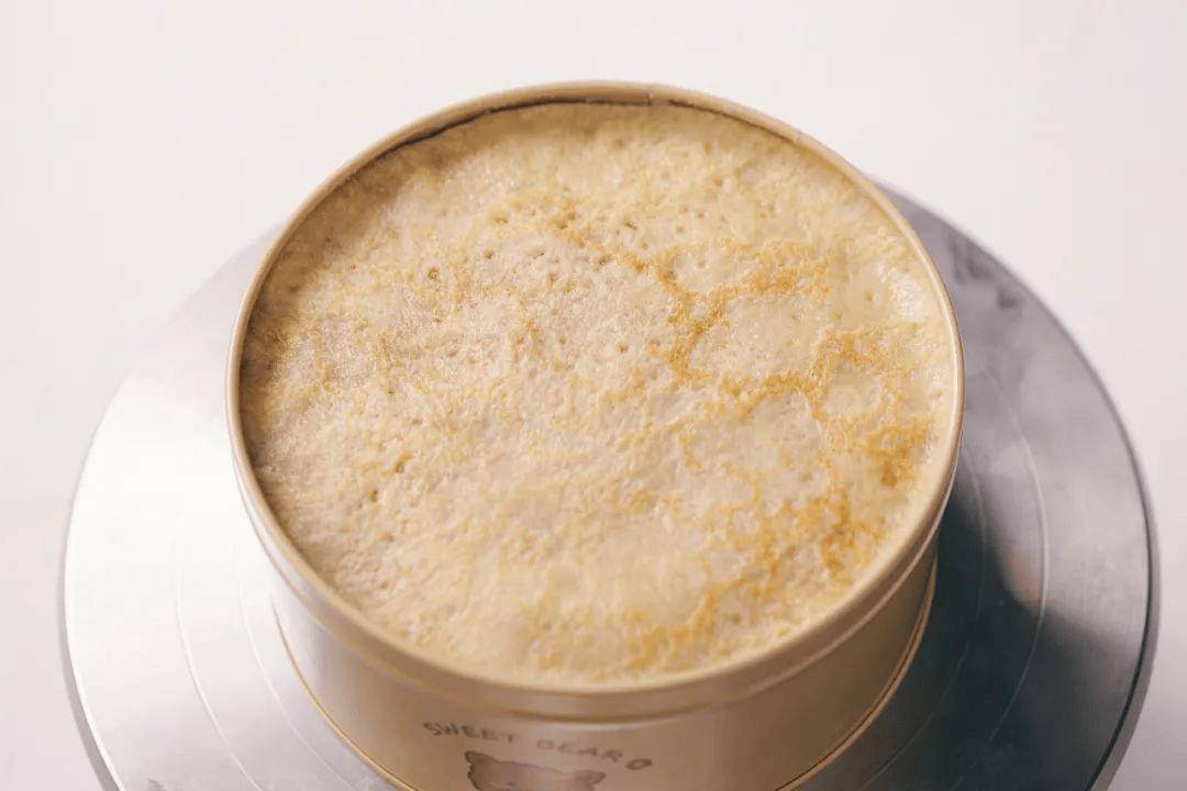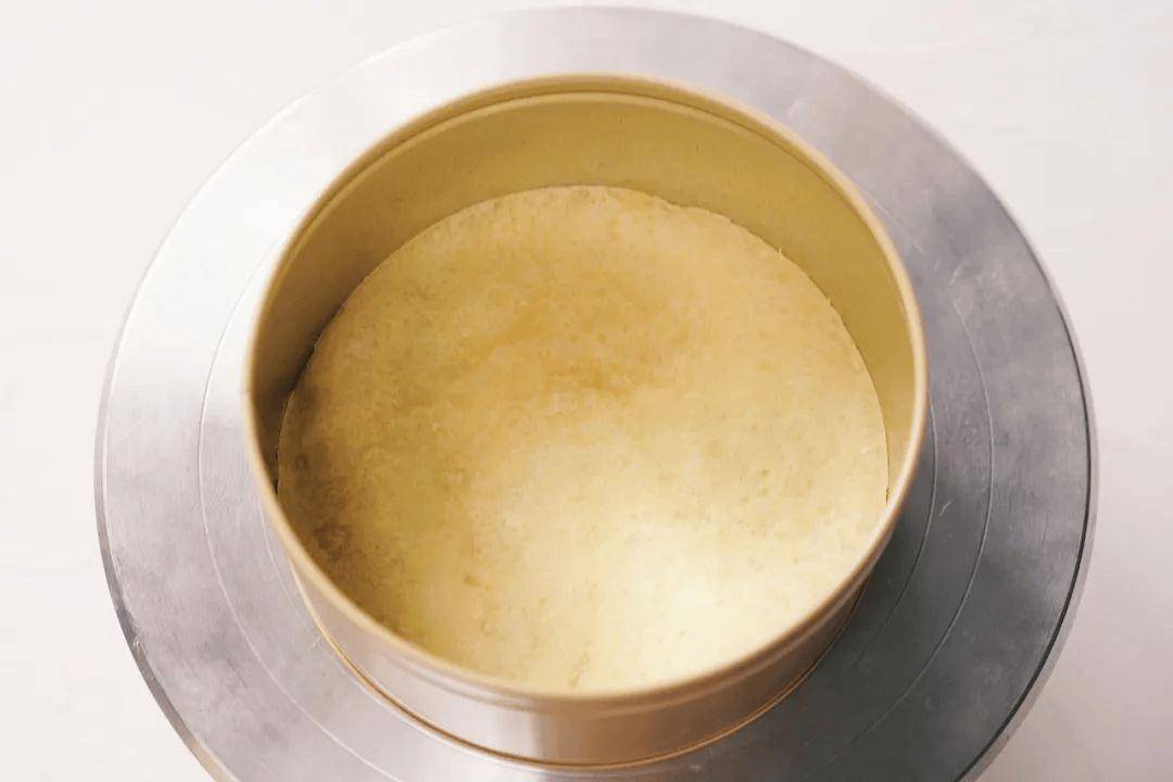 1/2 罐罐中放入一张千层,然后挤入一圈奶油,抹平。后再放入一张千层皮,一层奶油,抹平。(放在裱花台上挤馅料,馅料会挤得更均匀,没有裱花台也没关系)