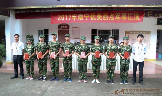 近日,南宁优美西点烘焙培训学校2017秋季新生军事汇报表演在操场上圆满结束。同学们英姿焕发、神采奕奕,以充沛的精力和认真的态度完成了这一场精彩绝伦的演绎。
