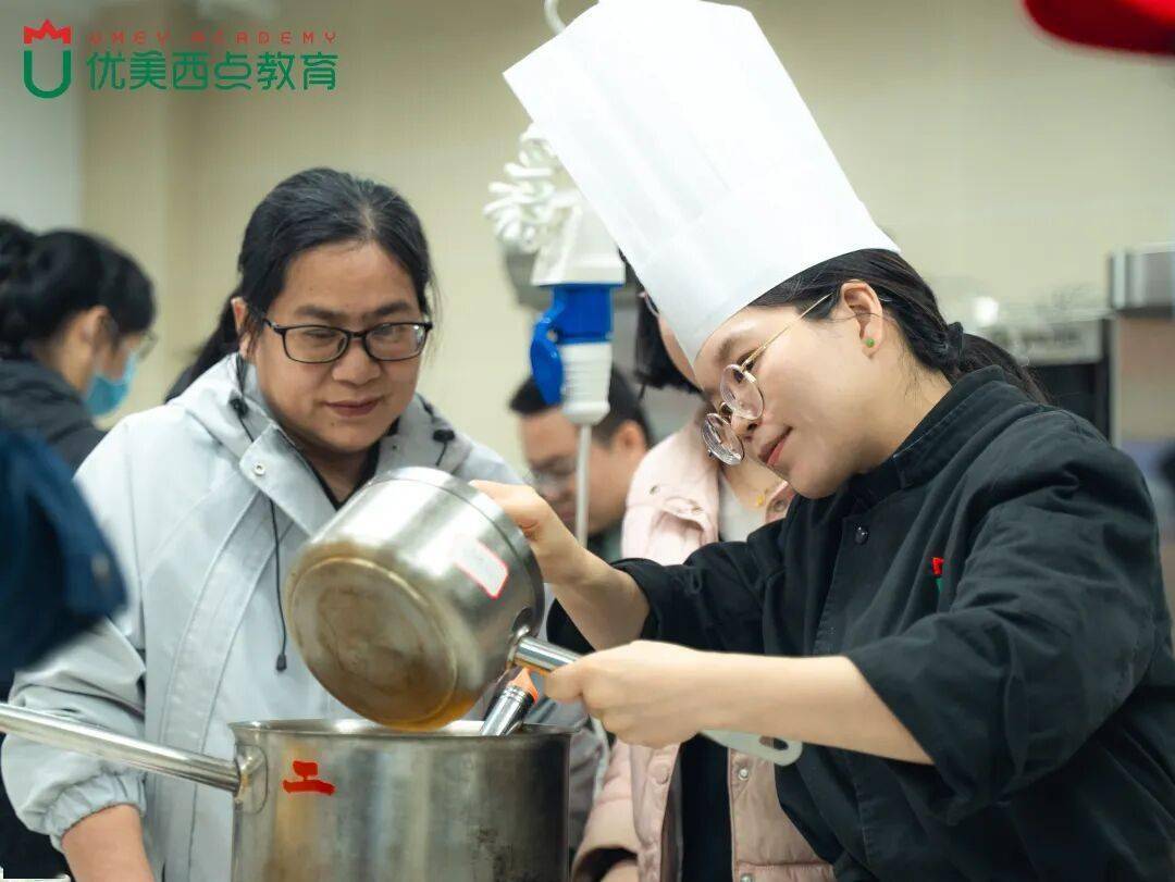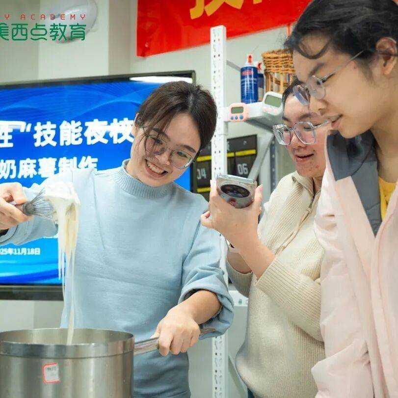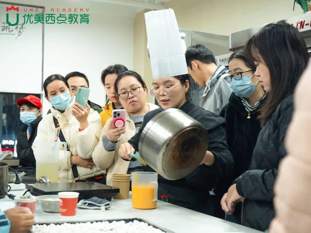 零基础的学员们跟着步骤一步步操作,从略显生疏到逐渐熟练,当鲜奶面糊熬煮成软糯抱团的麻薯,教室里满是成就感的惊叹声。
